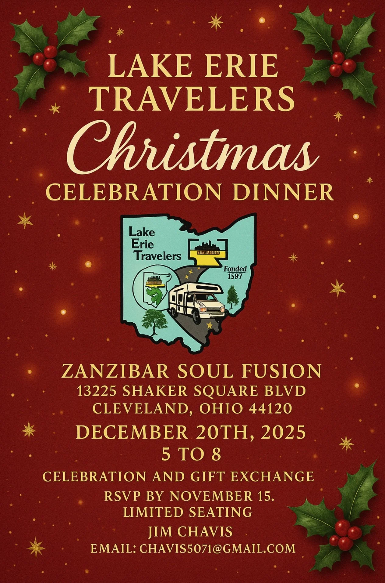 Step 1. Pre Registration for 2025 Lake Erie Travelers Summer Time Event at Eventbrite (Click the Red link below), Step 2. Print the 2025 Registration Form, Step 3. Mail in your Registration Form with payment before February 28, 2025: http://www.eventbrite.com/e/1073915192249?aff+oddtdtcreator